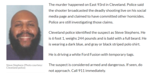 A horrific murder was committed this weekend in Cleveland, and the alleged suspect, Steve Stephens, showed the act on Facebook live. It was a senseless killing of a 74-year old man walking home after Easter dinner.