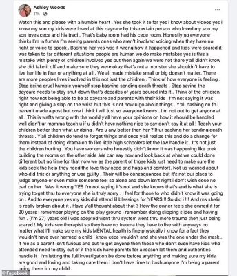 Several parents have responded to the outrage across the internet and the calls for the daycare to be shutdown. Ashley Wood of Hamilton, whose son attended the day care, stood up for CeeCee and asked the public to halt their slander and death threats toward the former childcare worker.